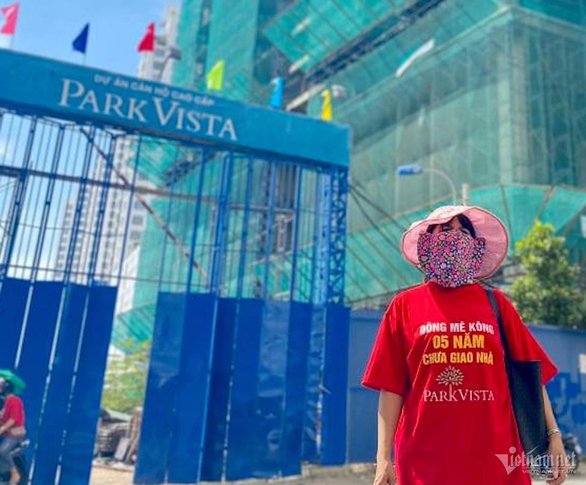 Chia sẻ với PV VietNamNet, bà P. cho biết năm 2017 bà ký hợp đồng mua căn hộ tại block B dự án Park Vista, giá 1,7 tỷ đồng với Công ty Đông Mê Kông. Sau khi thanh toán 500 triệu đồng, bà làm thủ tục vay vốn ngân hàng nhưng bị từ chối vì dự án chưa đáp ứng thủ tục pháp lý.