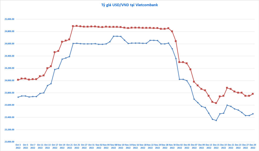 Chỉ số DXY - đo lường biến động của đồng USD so với rổ 6 đồng tiền chủ chốt trên thế giới - tính tới 29/12 giảm 9,5% so với đỉnh ghi nhận hôm 28/9 (115 điểm) xuống còn 104,06 điểm.