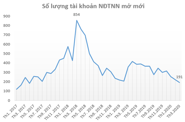 Cũng theo số liệu từ VSD, trong tháng 3 vừa qua, nhà đầu tư nước ngoài chỉ mở mới 191 tài khoản, con số thấp nhất trong vòng 3 năm qua.