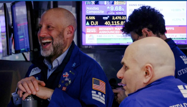 Chỉ số trung bình công nghiệp Dow Jones tăng 2.962,86 điểm, tương đương 7,87%, đóng cửa ở mức 40.608,45, mức tăng phần trăm lớn nhất kể từ tháng 3/2020. Nasdaq Composite tăng 12,16% lên mức 17.124,97, ghi nhận mức tăng theo ngày lớn nhất kể từ tháng 1/2001 và là ngày tốt thứ hai từ trước đến nay.