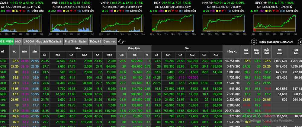 03/01/2023 23:11Chứng khoán rực rỡ đầu năm mới, VN-Index tăng gần 37 điểm