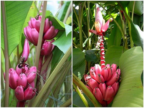 Ngoài trồng lấy quả, chuối tím có thể trồng làm cảnh khá đẹp vì màu sắc của hoa và trái rực rỡ, hút mắt. |