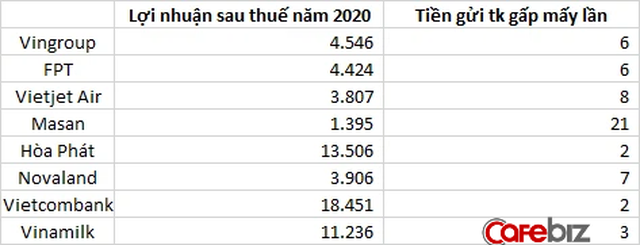 Tức là tiền lãi gửi tiết kiệm 1 năm đã gấp 6 lần lợi nhuận ròng của Vingroup trong năm 2020, gấp 8 lần lãi ròng của Vietjet Air năm 2019, hay gấp 21 lần lãi ròng của tập đoàn Masan năm 2020.