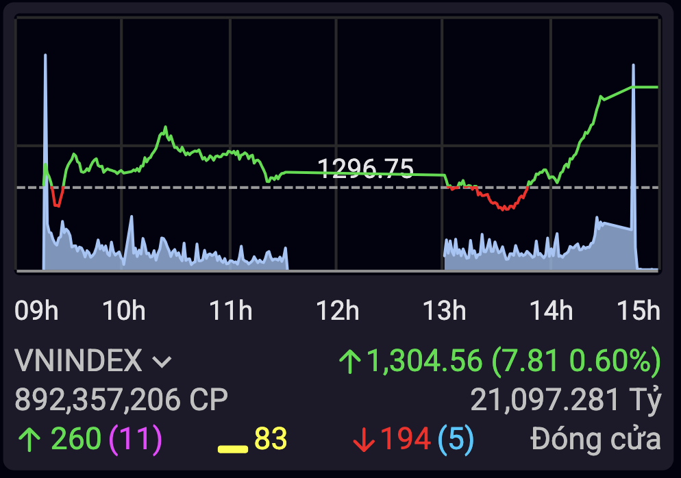 Đây là lần thị trường chứng khoán vượt mốc 1.300 điểm kể từ tháng 9-2024 tới nay.