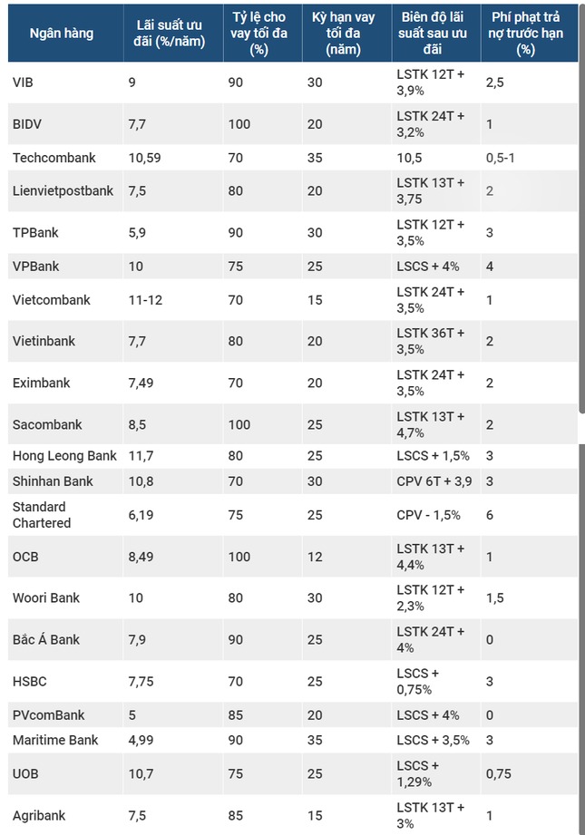 Ngân hàng có lãi suất vay mua nhà thấp nhất đang là MSB, nhưng chỉ cố định mức lãi suất này trong 3 tháng đầu, từ tháng thứ 4 trở đi, MSB sẽ áp dụng lãi suất thả nổi theo lãi suất thị trường.