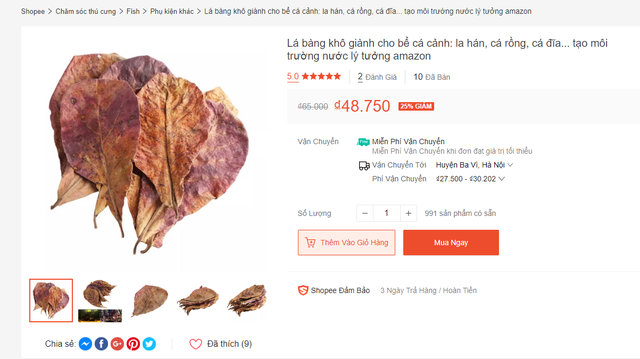 Thậm chí, trên các sàn thương mại điện tử như Lazada, Shopee... lá bàng tươi được rao bán rầm rộ, với giá bán dao động từ 10.000-80.000 đồng/kg. Mặt hàng này đã nhận được sự quan tâm của một số người tiêu dùng.
