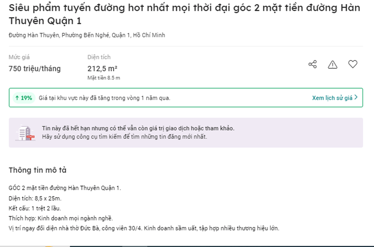 Khảo sát trên một số trang bất động sản, giá đất mặt phố Hàn Thuyên TPHCM đang được rao mua - bán ở mức 1-3 tỷ đồng/m2. Với khoảng 210m2, giả sử bán với giá khoảng 250 tỷ đồng rồi gửi ngân hàng mỗi năm cũng thu về khoảng 15-20 tỷ đồng tiền lãi, tương đương mỗi tháng thu về 1,25-1,6 tỷ đồng.