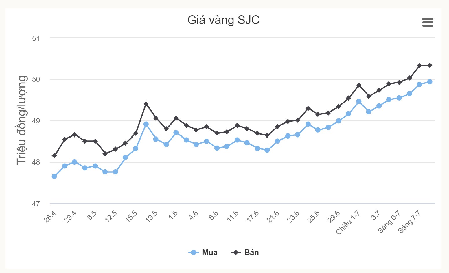 "Hiện tại, vàng có thể trên dưới 50 triệu một lượng nhưng viễn cảnh mất ngay vài ba triệu chắc chắn không có", ông Hải nói, đồng thời dự báo đà tăng có thể kéo dài thêm 1-2 tháng tới.