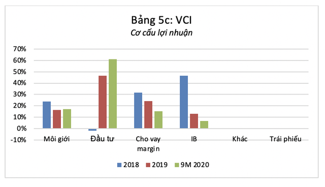 Với chiến lược hoạt động khác biệt, VCI là CTCK duy nhất duy trì lợi nhuận đều đặn từ mảng IB, sân chơi có hàng rào gia nhập khá cao. 9 tháng đầu VCI ghi nhận lợi nhuận từ mảng IB thấp nhất trong ba năm trở lại đây khi hoạt động này phục hồi có độ trễ so với thị trường chung. Danh mục đầu tư của VCI vẫn còn có các cổ phiếu chưa định giá lại (AFS) trị giá khoảng 2.000 tỷ như một số cổ phiếu niêm yết và Lothamilk, Napas, IDP- các ẩn số lớn. Mới đây lãnh đạo CTCK này cho biết đang thực hiện các hoạt động phát hành có giá trị 1-1,5 tỉ USD cho các doanh nghiệp tư nhân lớn đưa VCI quay lại quỹ đạo tăng trưởng trong mảng IB thời gian tới.