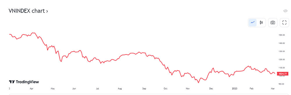 Thị trường chứng khoán diễn biến xấu trong bối cảnh các doanh nghiệp bất động sản vẫn gặp khó về dòng tiền và gánh nặng nợ (trong đó có trái phiếu). Nhóm ngân hàng cũng bị ảnh hưởng. Trong khi đó, nhóm sản xuất cũng gặp khó khăn khi sức cầu suy giảm không chỉ ở Việt Nam mà còn trên thế giới.