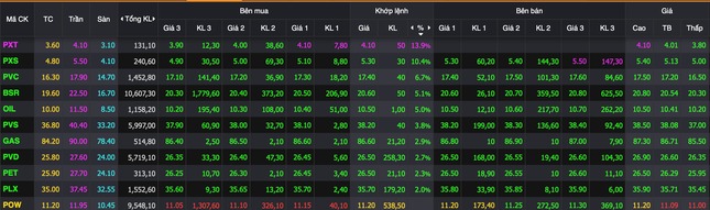 Đáng chú ý trong phiên hôm nay là diễn biến của nhóm dầu khí, phân bón. Giá dầu Brent và WTI tăng 5% trong sáng nay, trước lo ngại của nhà đầu tư về bất ổn chính trị tại Trung Đông. Hiệu ứng từ giá dầu thế giới ngay lập tức có ảnh hưởng đến nhóm cổ phiếu dầu khí tại thị trường trong nước. Sắc xanh bao phủ toàn bộ cổ phiếu, BSR, GAS, PVS, PVD, PVT, PVB, PVC,… đồng loạt bứt. Trên UPCoM, PXT tăng trần.