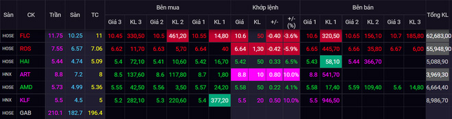 Đáng chú ý hơn, lúc 13h10, FLC và ROS bất ngờ khớp toàn bộ giá sàn để có thanh khoản trở lại. Pha giải cứu đã hút hết 63 triệu cổ phiếu FLC và 56 triệu cổ phiếu ROS.