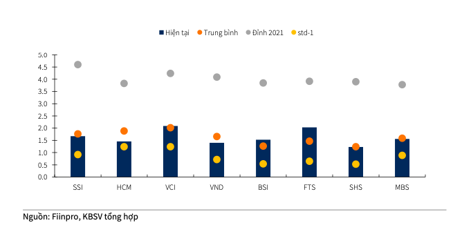 Chứng khoán KBSV cho rằng định giá cổ phiếu ngành chứng khoán đã về vùng tương đối hấp dẫn.
