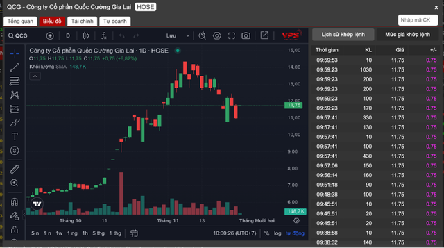 Cụ thể, giá cổ phiếu QCG tăng kịch trần lên 11.750 đồng/cổ phiếu với 118.000 cổ phiếu đã khớp lệnh và dư mua giá trần gần 1,4 triệu cổ phiếu. Trong vòng 6 tháng trở lại đây, cổ phiếu QCG đã tăng mạnh gần như gấp đôi so với trước. Nhiều nhà đầu tư chốt lãi 30-70%.
