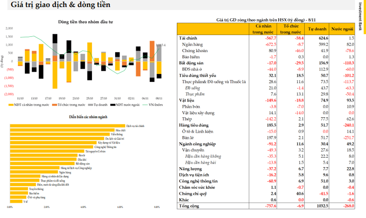Có thể thấy, cú tăng hơn 33 điểm với thanh khoản khớp lệnh tăng vọt hôm 8/11 đã giúp VN-Index vượt lên trên ngưỡng hỗ trợ tâm lý quan trọng 1.100 điểm. Điều này giúp cải thiện tinh thần của các nhà đầu tư.