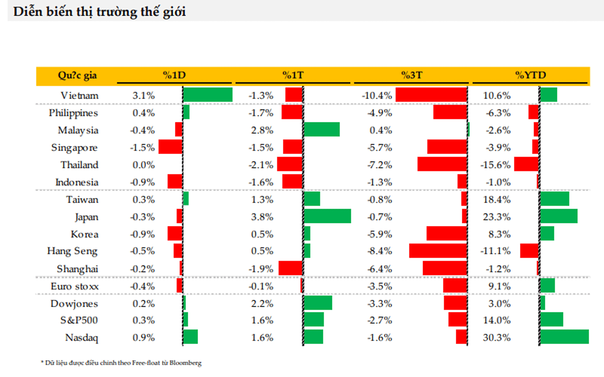 Chứng khoán châu Âu cũng tiếp đà hồi phục. Trên thị trường châu Á, đã có sự điều chỉnh nhẹ. Nhưng nhìn chung, chứng khoán toàn cầu đang diễn biến tích cực theo sự chững lại của đồng USD và sự suy giảm của giá dầu thô cũng như lợi tức trái phiếu chính phủ các nước.
