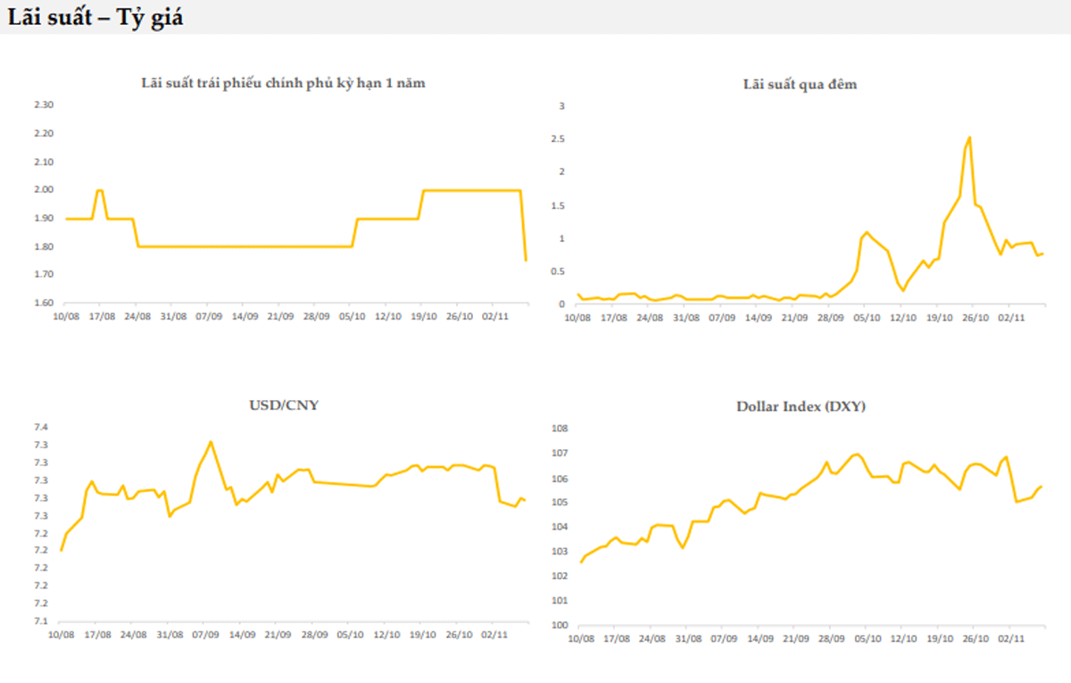 Trên thị trường liên ngân hàng, thanh khoản khá dồi dào. Lãi suất qua đêm đã xuống dưới ngưỡng 1%/năm kể từ đầu tháng tới nay. Hoạt động phát hành tín phiếu hút tiền về của Ngân hàng Nhà nước cũng ít, chỉ khoảng 5.000 tỷ đồng/phiên với lãi suất về ngưỡng 1%/năm, thay vì 1,5%/năm như hồi cuối tháng 10 và đầu tháng 11. Các tín phiếu kỳ hạn 28 ngày phát hành hồi tháng 10 ở mức 10.000-20.000 tỷ đồng/phiên, tương đương một lượng tiền khá lớn được trả lại cho thị trường.