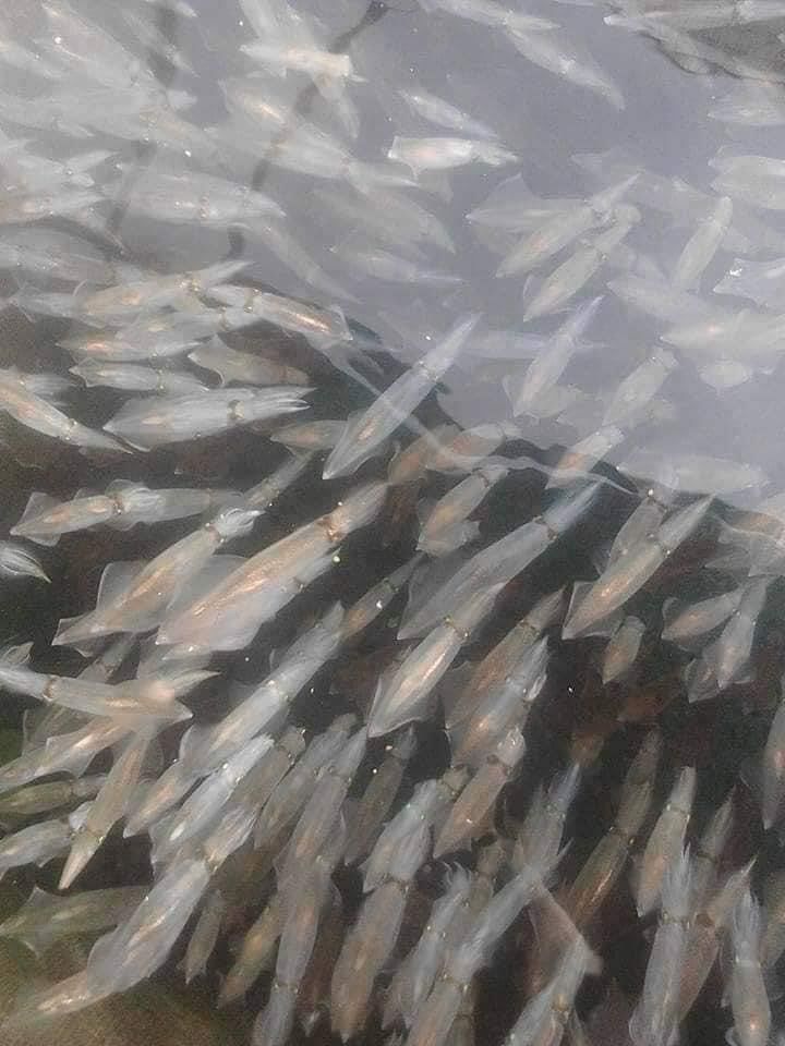 Theo người dân, mực nhảy là những con mực khi vớt lên để chế biến vẫn còn sống, giãy đành đạch, mắt và các sao phát sáng trên thân mực nhấp nháy liên tục.