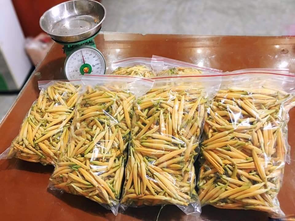 Thời điểm này bắt đầu mùa hoa nên hàng chưa nhiều, mỗi ngày anh chỉ gom được 20-30kg hoa hiên để trả cho khách đã đặt. Vào giữa mùa thì lượng hoa thường nhiều gấp đôi, khi đó khách chỉ cần đặt trước 1-2 ngày.