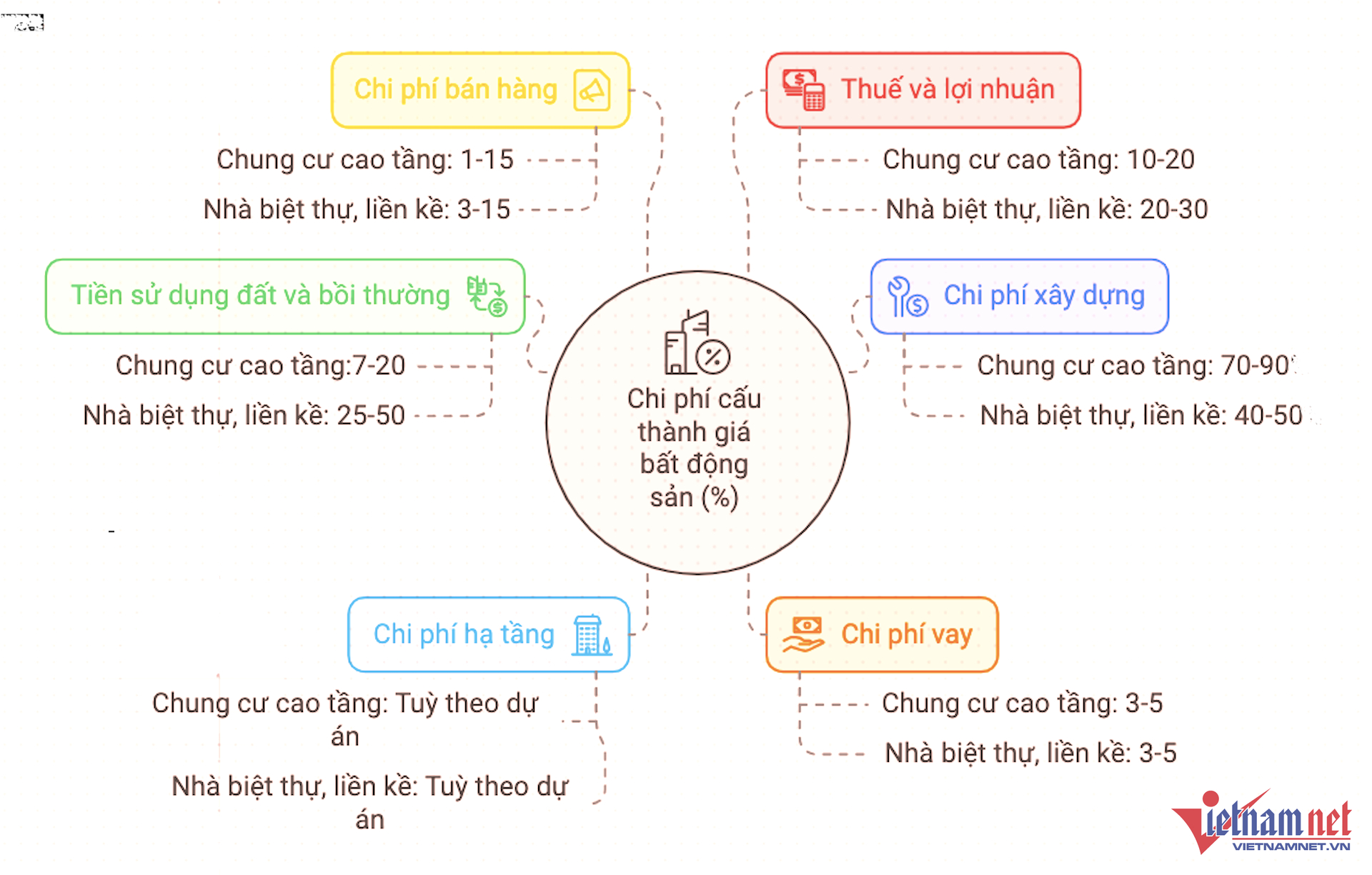 Các chi phí này chiếm tỷ trọng khác nhau đối với dự án nhà ở chung cư cao tầng và dự án nhà biệt thự, liền kề, cũng như quy mô, tính chất… của từng dự án.