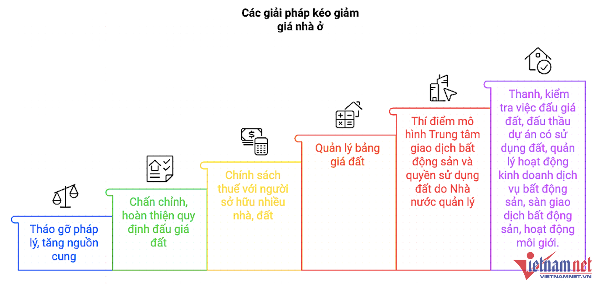 Để kéo giảm giá nhà, Bộ Xây dựng đề xuất nhiều giải pháp trong đó tập trung tháo gỡ khó khăn về thủ tục, pháp lý, tăng nguồn cung thị trường, thúc đẩy thị trường phát triển an toàn, bền vững. Tổ chức triển khai thực hiện có hiệu quả các chính sách, pháp luật liên quan lĩnh vực bất động sản mới được ban hành.