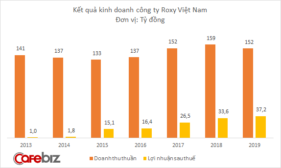 Theo đó, Roxy Việt Nam đạt doanh thu thuần 152 tỷ đồng, giảm khoảng 4,4% so với năm trước. Tuy nhiên, lợi nhuận sau thuế lại tăng gần 11%, lên 37,2 tỷ đồng. Tính từ năm 2013 đến nay, lợi nhuận của Roxy Việt Nam luôn tăng.