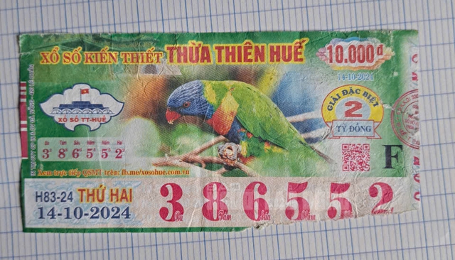 Bà N.T.N. (SN 1971, trú tại huyện Thăng Bình, tỉnh Quảng Nam), mua 2 tờ vé số của Công ty TNHH Một thành viên Xổ số kiến thiết tỉnh Thừa Thiên Huế (Công ty XSKT tỉnh Thừa Thiên Huế), có ký hiệu H83-24 (10.000 đồng/vé), gồm một tờ mang số dự thưởng 386552 (F) và một tờ mang số 486552 (F), phát hành ngày 14/10.