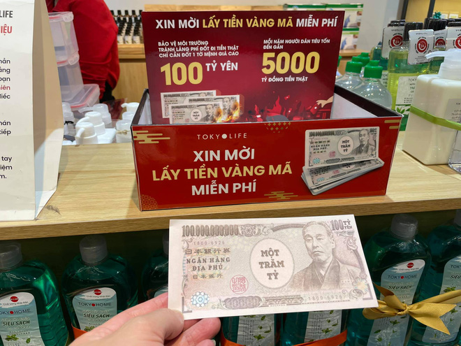 Thời gian gần đây, nhiều khách hàng khá bất ngờ khi quầy thu ngân của một hệ thống cửa hàng tiêu dùng, thời trang đặt một chiếc hộp có đựng tiền vàng mã, với mỗi tờ tiền trị giá 100 tỷ yên. Khách mua hàng sẽ được mời lấy tiền vàng mệnh giá "khủng" miễn phí, dùng để đốt mã cho dịp cuối năm.
