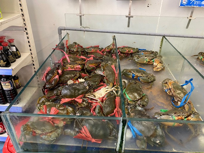 Trong khi đó, theo ghi nhận của phóng viên, giá tôm hùm, cua biển tại các chợ và siêu thị ở TP HCM vẫn ở mức khá cao, không thay đổi nhiều so với trước. Chẳng hạn, tại một số siêu thị, cua biển loại cua thịt đang được bán với giá 450.000 đồng/kg, tôm hùm bông xuất khẩu 1,65 triệu đồng/kg. Tại chợ Đo Đạc (quận 2, TP HCM), giá cua thịt Bình Đại - Bến Tre 400.000 đồng/kg, cua gạch 450.000 đồng/kg. Tại vựa hải sản trên đường Ký Con (quận 1), giá cua thịt Bến Tre 300.000 đồng/kg, của gạch 350.000 đồng/kg. Nhiều điểm bán cua Cà Mau tại TP HCM vẫn chào giá 550.000-600.000 đồng/kg.