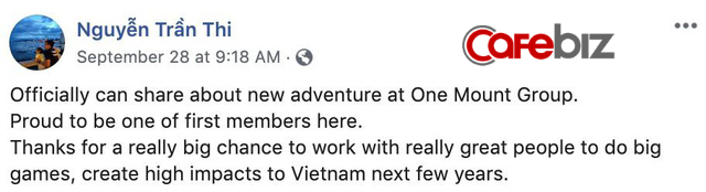 Hai sự kiện này hoá ra lại có điểm chung. Trên Facebook cá nhân, ông Thi đã công bố về việc gia nhập One Mount Group.