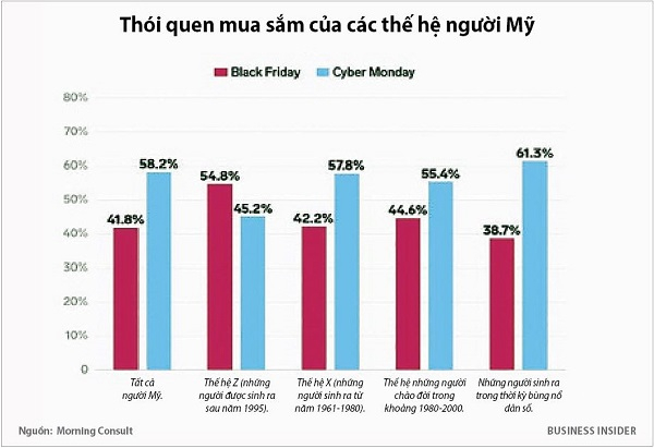 Đáng chú ý, khung thu nhập càng cao, càng có nhiều người tham gia khảo sát ưa thích Cyber Monday hơn Black Friday. Ngoài ra, ngoại trừ thế hệ Z (những người được sinh ra sau năm 1995), người tiêu dùng các thế hệ cho biết họ muốn mua sắm trực tuyến vào ngày Cyber Monday hơn là Black Friday.