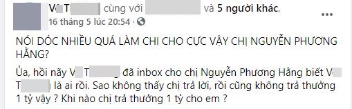 Hiện tại, netizen vẫn đang hồi hộp hóng xem ai có thể cung cấp thông tin cho bà Phương Hằng để có 1 tỷ tiền thưởng và chân tướng thật của người đứng sau nick ảo V.T.