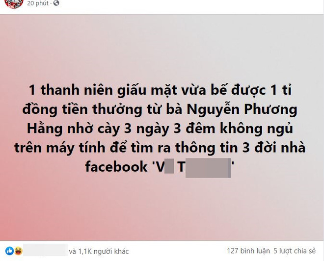 Chỉ sau 3 ngày, danh tính thật của nick V.T - antifan tích cực mà theo bà Phương Hằng, vợ đại gia Dũng "lò vôi" đã được tìm ra? Người đó thực sự là ai? Nhóm "thám tử" mạng nào có khả năng truy vết giỏi đến thế để ẵm trọn 1 tỷ đồng "thưởng nóng" từ tay bà Phương Hằng? Đó là những thông tin được dân mạng vô cùng quan tâm, sau khi một loạt page lớn chuyên hóng chuyện chia sẻ thông tin.