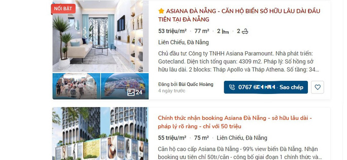 Cụ thể, Sở Xây dựng TP Đà Nẵng nhận được thông tin quảng cáo, rao bán căn hộ chung cư tại dự án Khu căn hộ Asiana do Công ty TNHH Asiana Paramount làm chủ đầu tư (CĐT) và dự án Chung cư nhà ở xã hội tại lô B4-1 thuộc dự án Khu đô thị Xanh Bàu Tràm Lakeside (cùng thuộc phường Hòa Hiệp Nam, quận Liên Chiểu) do Công ty cổ phần Đầu tư Sài Gòn - Đà Nẵng làm CĐT.