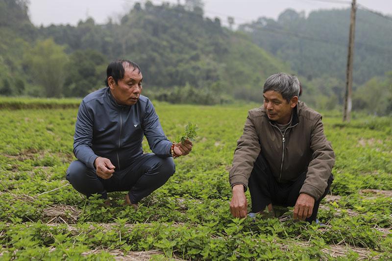 Ông Lý Văn Giang - dân tộc Nùng - khoe gia đình ông có 5 nhân khẩu nên trồng được 1,4 mẫu thạch đen, sản phẩm được doanh nghiệp bao tiêu toàn bộ với giá cao. Nhờ vậy, mỗi vụ ông thu về khoảng 100 triệu đồng.
