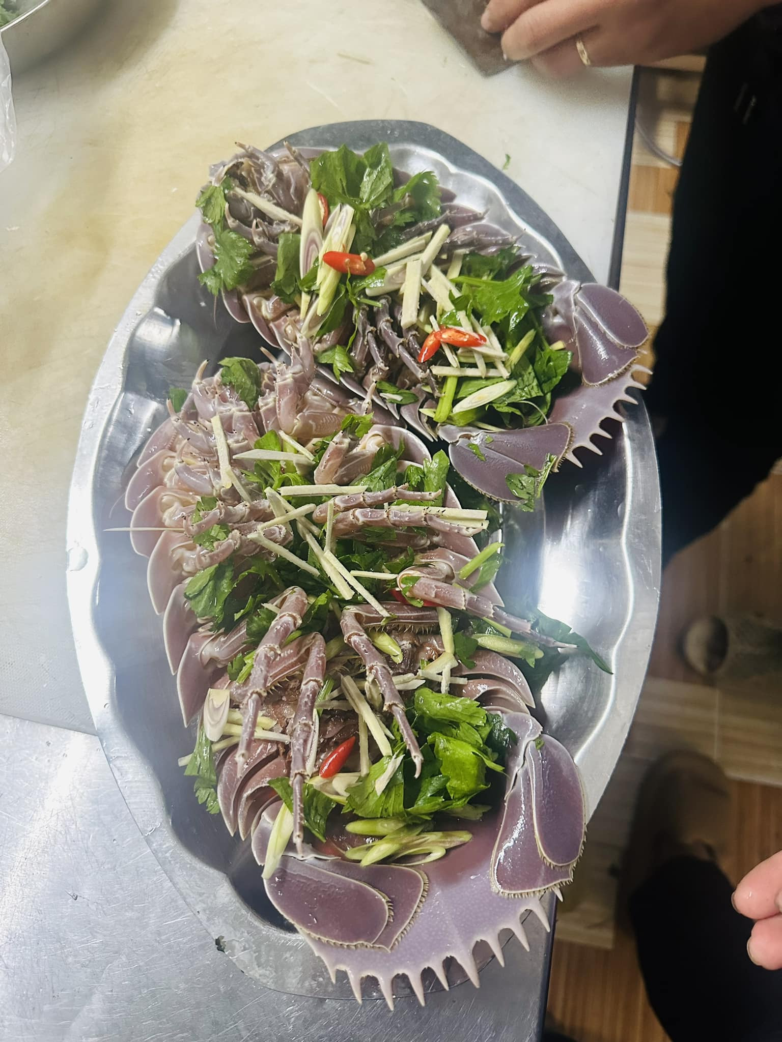Với món bọ biển hấp hoặc nướng, thực khách chấm cùng nước sốt, nước mắm hoặc muối tiêu ớt đều ngon, có thể ăn kèm với các loại rau sống cho bớt ngấy.