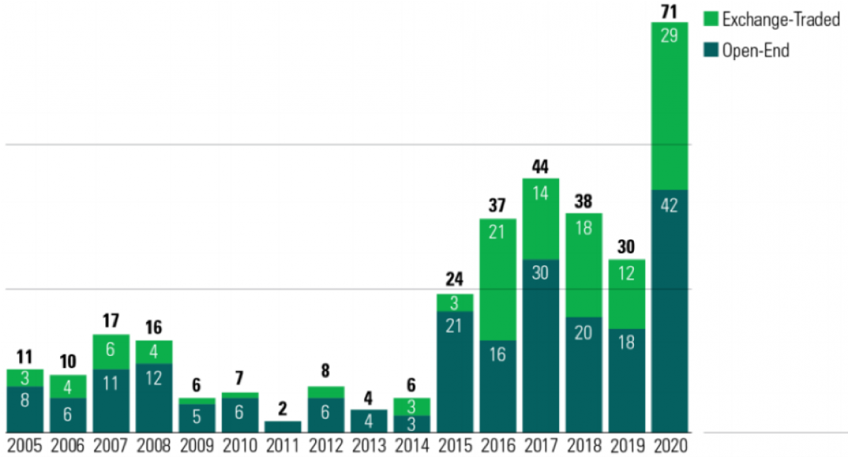 Riêng các quỹ ESG chiếm khoảng 1/4 lượng tiền chảy vào tất cả các quỹ tương hỗ, trái phiếu và cổ phiếu của Mỹ, đây là bước nhảy vọt lớn so với chỉ 1% vào năm 2014. Cũng trong năm 2020, tại Mỹ ghi nhận gần 400 quỹ đầu tư ESG, tăng 30%, đồng thời đã gấp 4 lần trong một thập kỷ. Nhà đầu tư tỏ ra hào hứng với khái niệm đầu tư ESG. Giờ đây, những lo ngại về sự phát triển bền vững có thể được giải quyết thông qua các khoản đầu tư có chọn lọc.