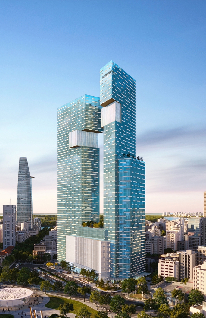 Theo mô tả, dự án này cao 224 m, gồm 2 tòa tháp được kết nối bởi khối đế bán lẻ. Theo đó, tòa tháp 55 tầng West Tower bao gồm 37.400 m2 sàn khách sạn Ritz Carlton 250 phòng, 17.800 m2 sàn văn phòng hạng A.; tòa tháp 48 tầng East Tower bao gồm 58.400 m2 sàn, chia thành 350 căn hộ hạng sang.