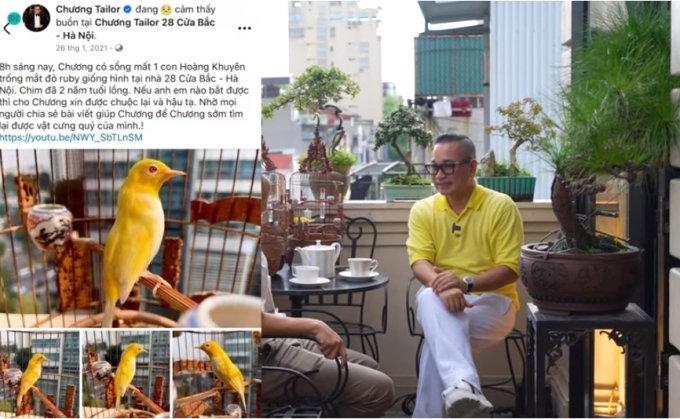 Cũng theo chia sẻ của anh Chương Tailor, trước đó trong khi đang ở Anh thì anh nghe tin ở Bắc Giang có 1 tổ chim vành khuyên đột biến nên anh vội vã bay về để đón luôn. Anh Chương đã bỏ ra 410 triệu đồng để mua lại 4 chú chim vành khuyên này. Theo quan sát, thay vì có màu xanh đặc trưng, tổ chim này có 4 con đều là hoàng khuyên (lông vàng, bụng trắng), màu sắc vô cùng nổi bật.