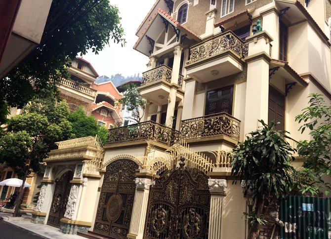 Được biết căn biệt thự "sinh ba" trên nằm trong một con ngõ đường Trung Kính (Cầu Giấy), có 3 biệt thự với 3 cổng nhôm đúc mạ đồng giống hệt nhau. Chủ sở hữu của chúng được cho là 3 anh em ruột người Thái Bình đều làm trong ngành ngân hàng và chứng khoán.