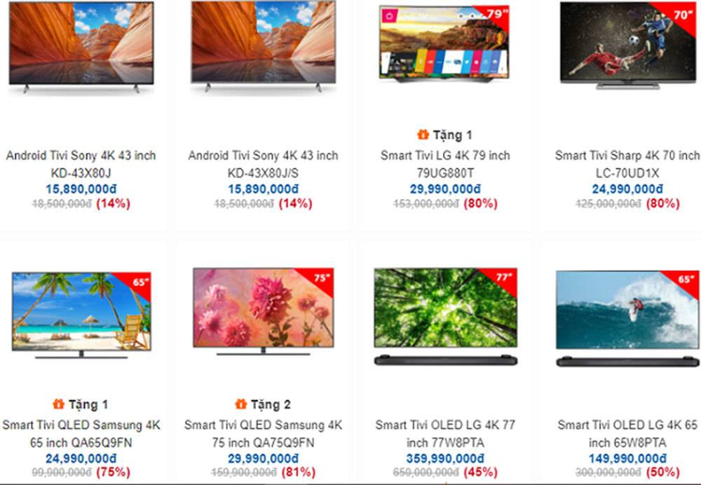 Sau Tết, nhiều siêu thị điện máy tiến hành khuyến mãi, giảm giá sâu. Báo Dân Việt cho hay, mặt hàng giảm giá nhiều nhất là tivi được giảm đến 80% đối với hàng trưng bày. Cùng với tivi, dịp này, các sản phẩm máy giặt cũng ghi nhận mức giảm trên 50% đối với hàng mẫu, hàng trưng bày. Ngoài tivi, máy giặt, các siêu thị điện máy còn giảm giá hàng loạt tủ lạnh, máy lọc nước và đồ gia dụng...