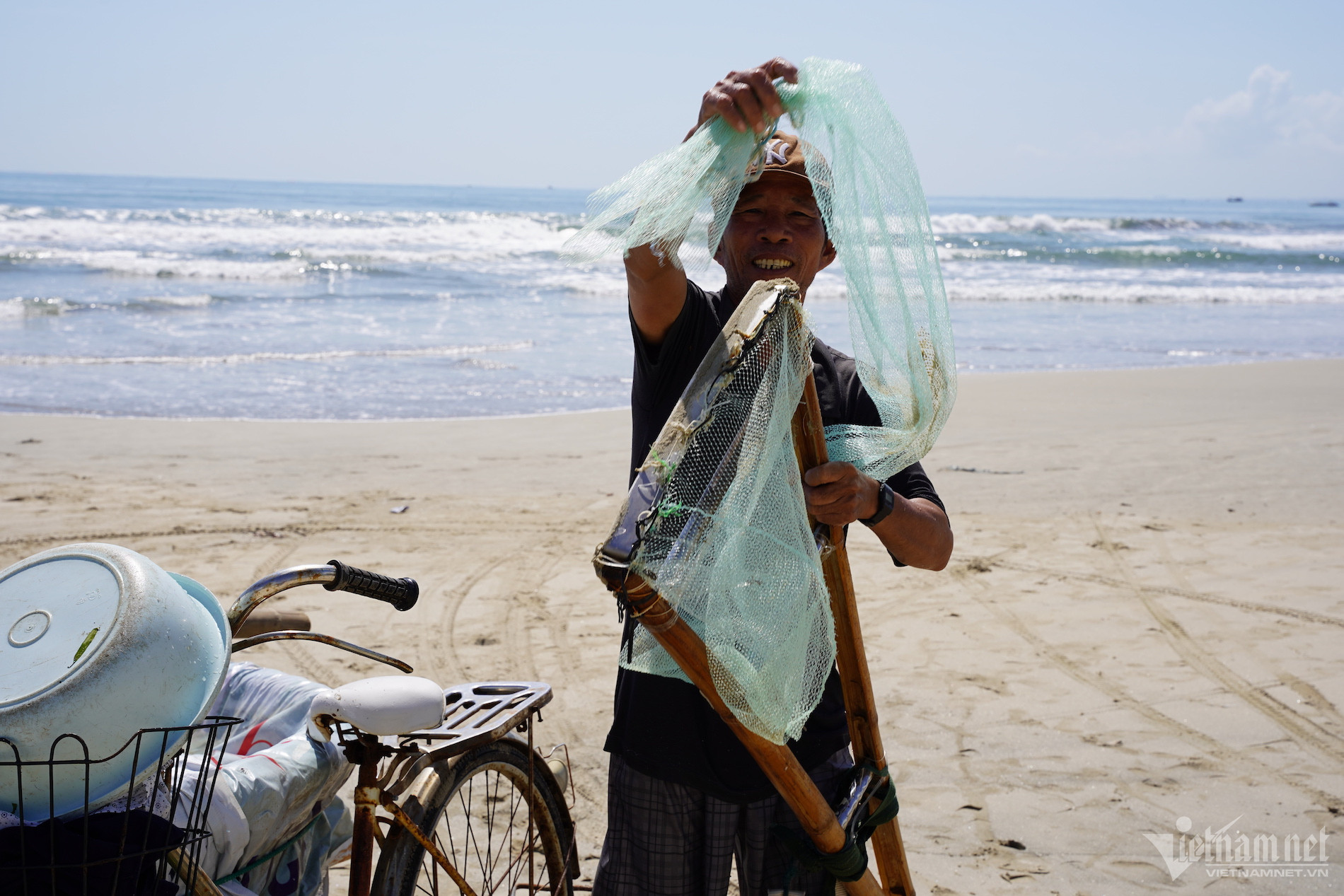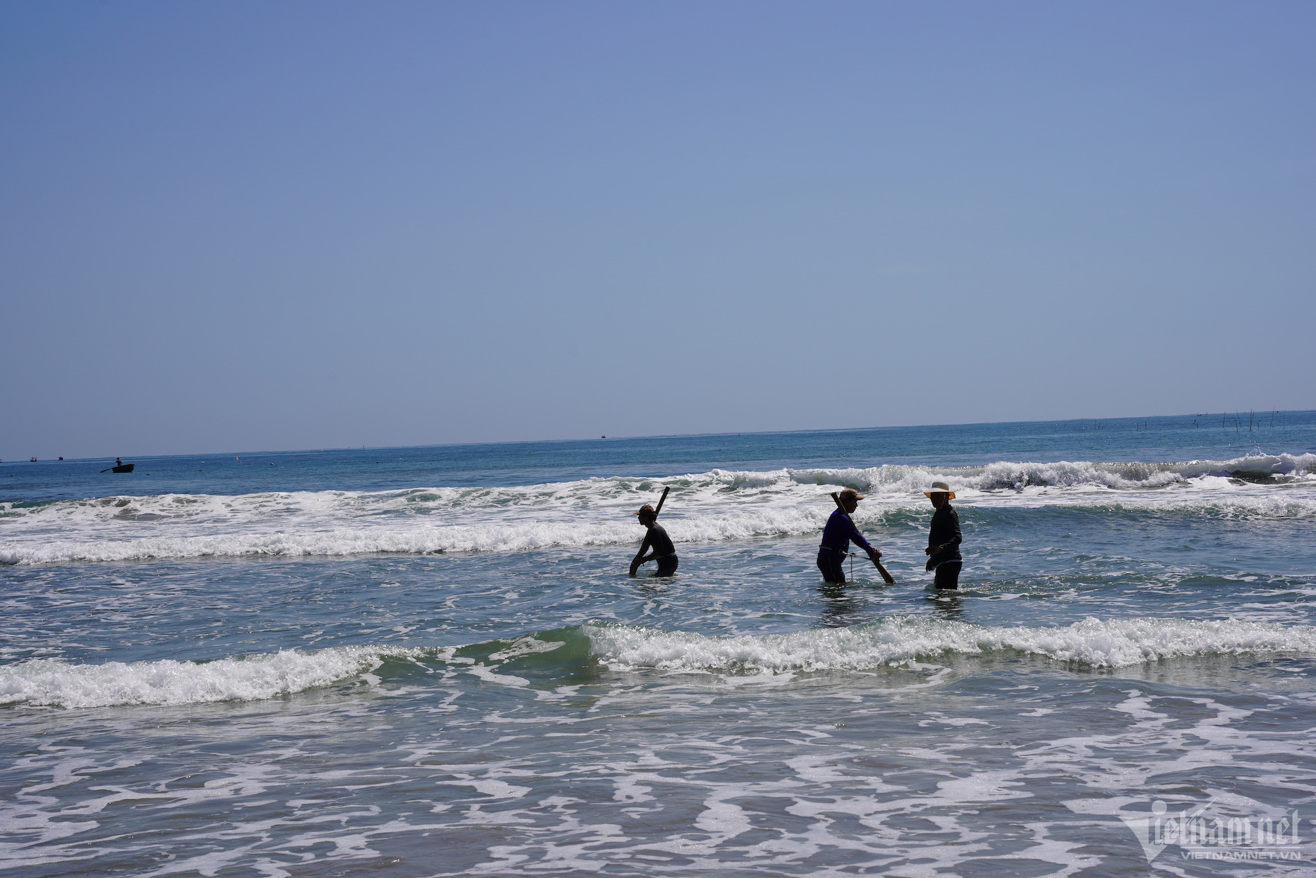 Những ngày này, đi dọc bãi biển Đà Nẵng sẽ thấy nhiều người dầm mình trên biển để cào ốc lể, kiếm thêm thu nhập.