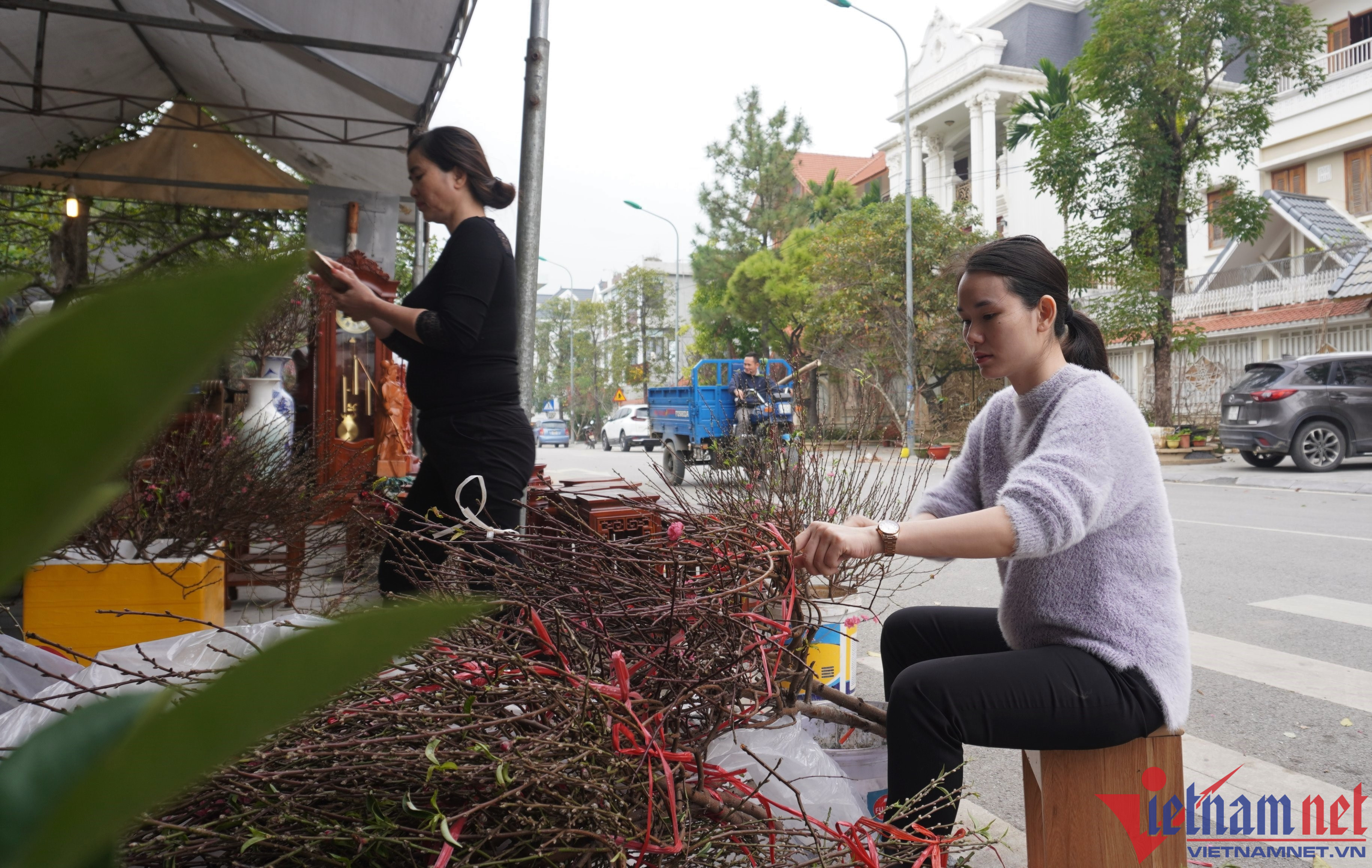 Ông Lê Văn Tú, người chở đào, quất thuê tại các chợ hoa Tết cho biết, lượng người mua ít hơn nhiều so với mọi năm. “Năm ngoái, mỗi ngày tôi thu nhập trên 1 triệu đồng. Năm nay, ngồi cả ngày may ra được một hai chuyến hàng”, ông Tú chia sẻ.