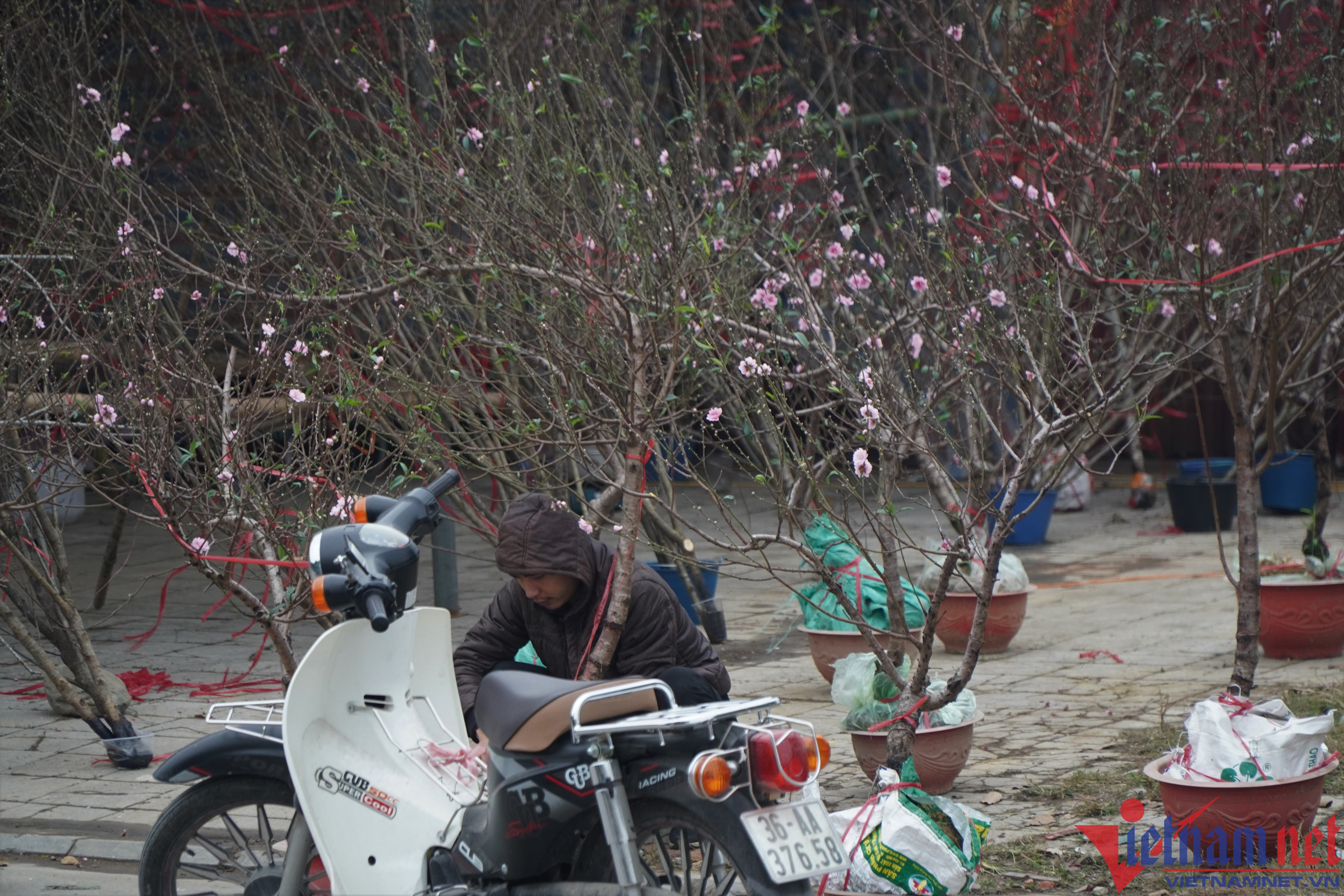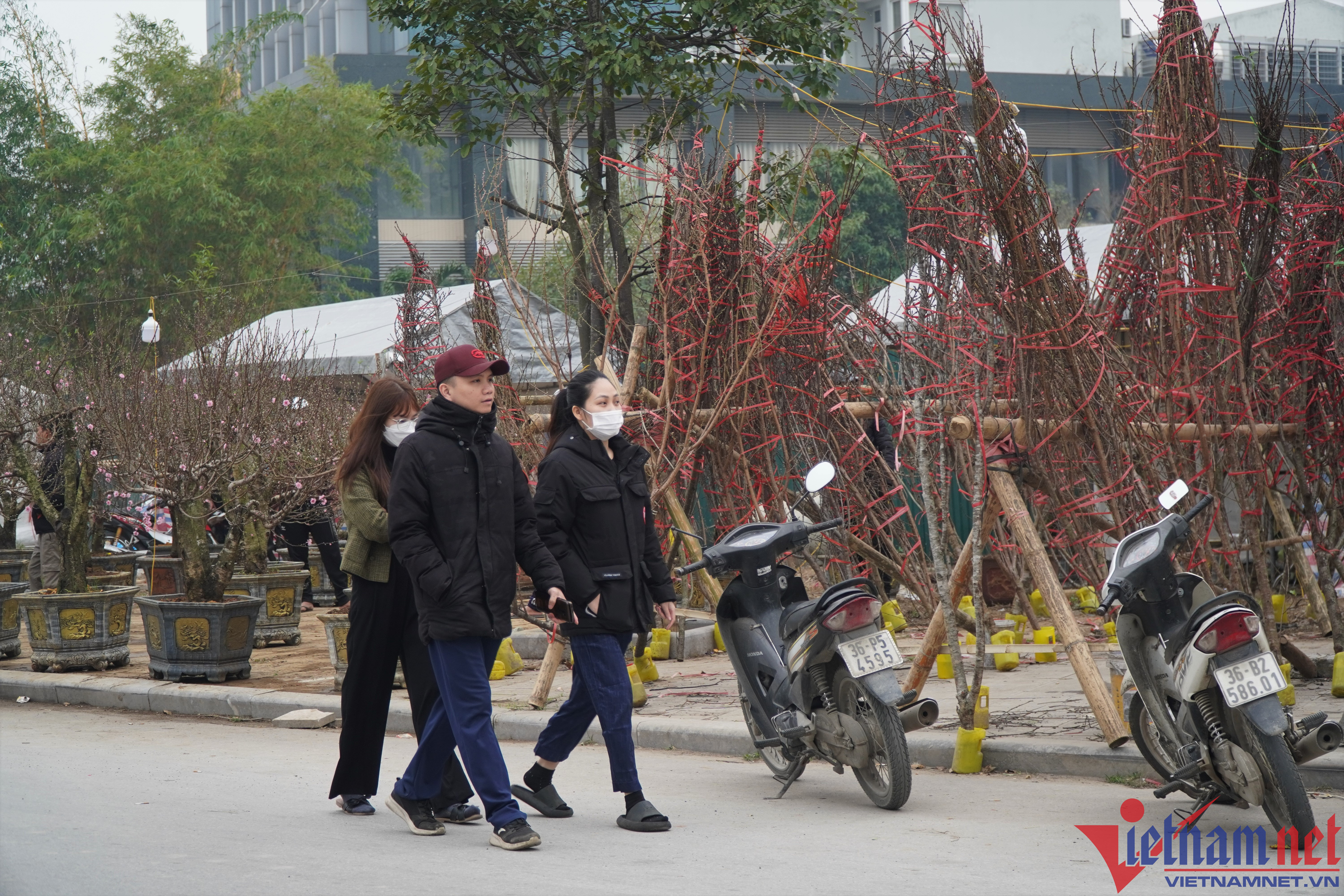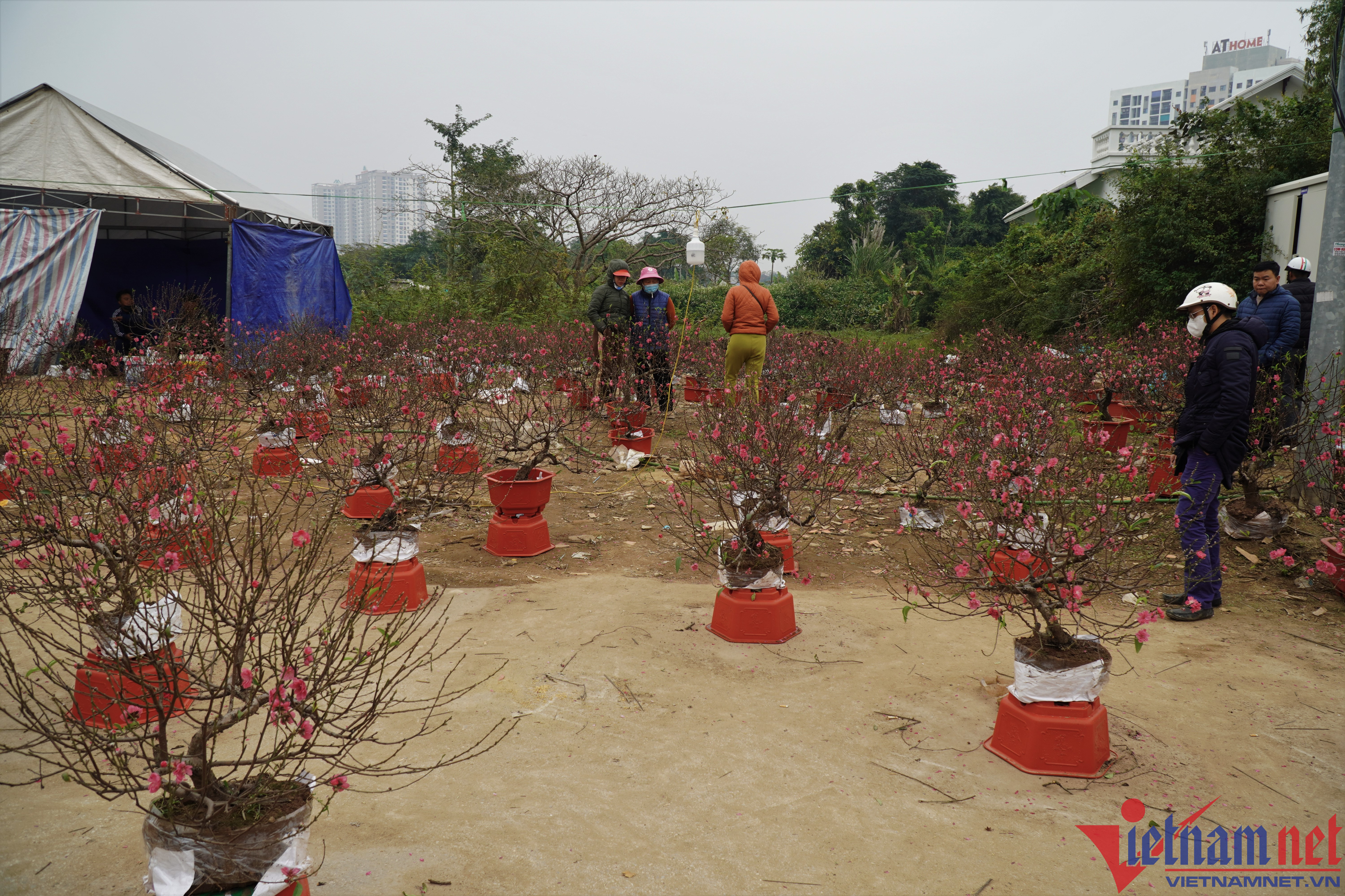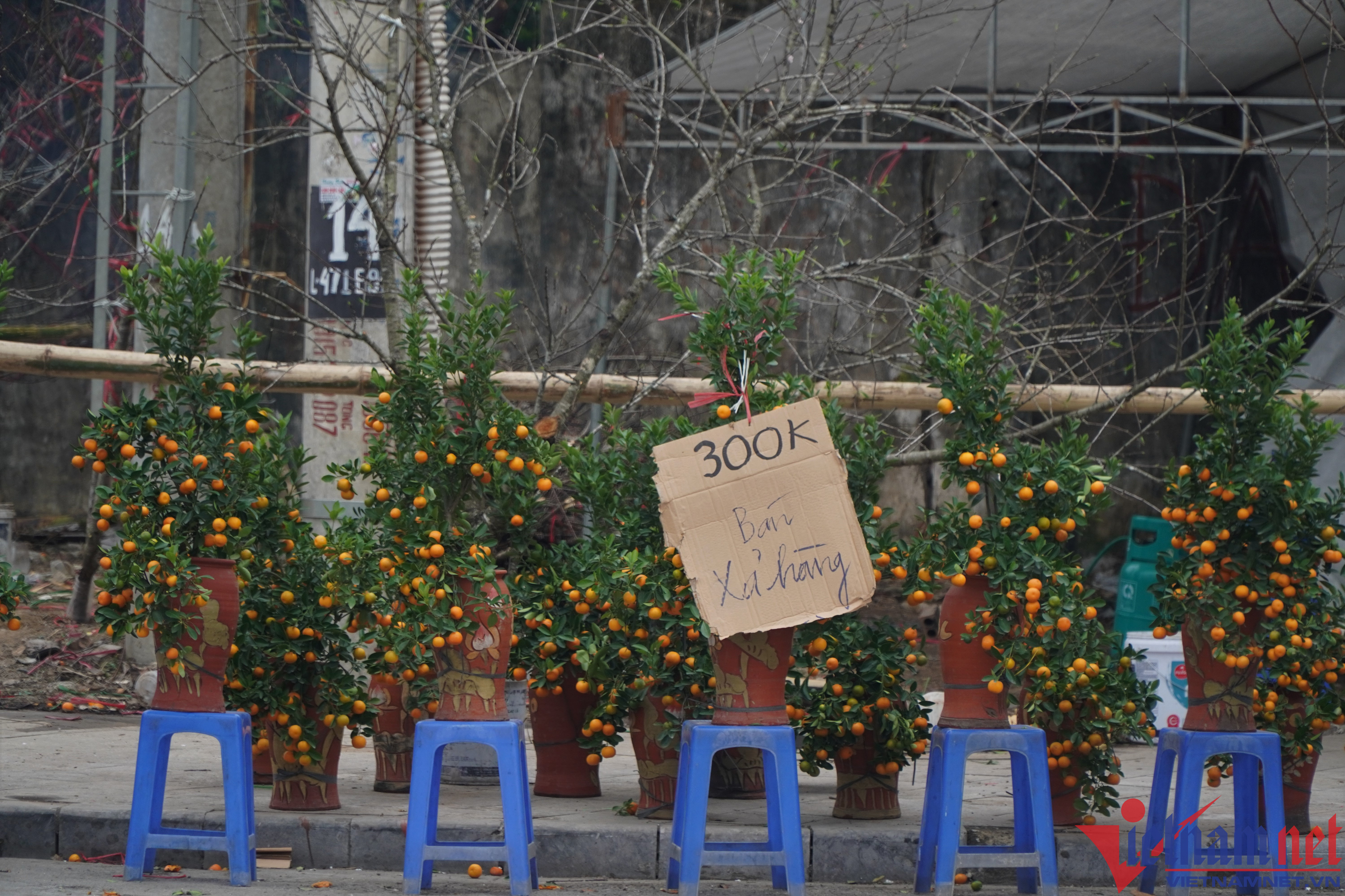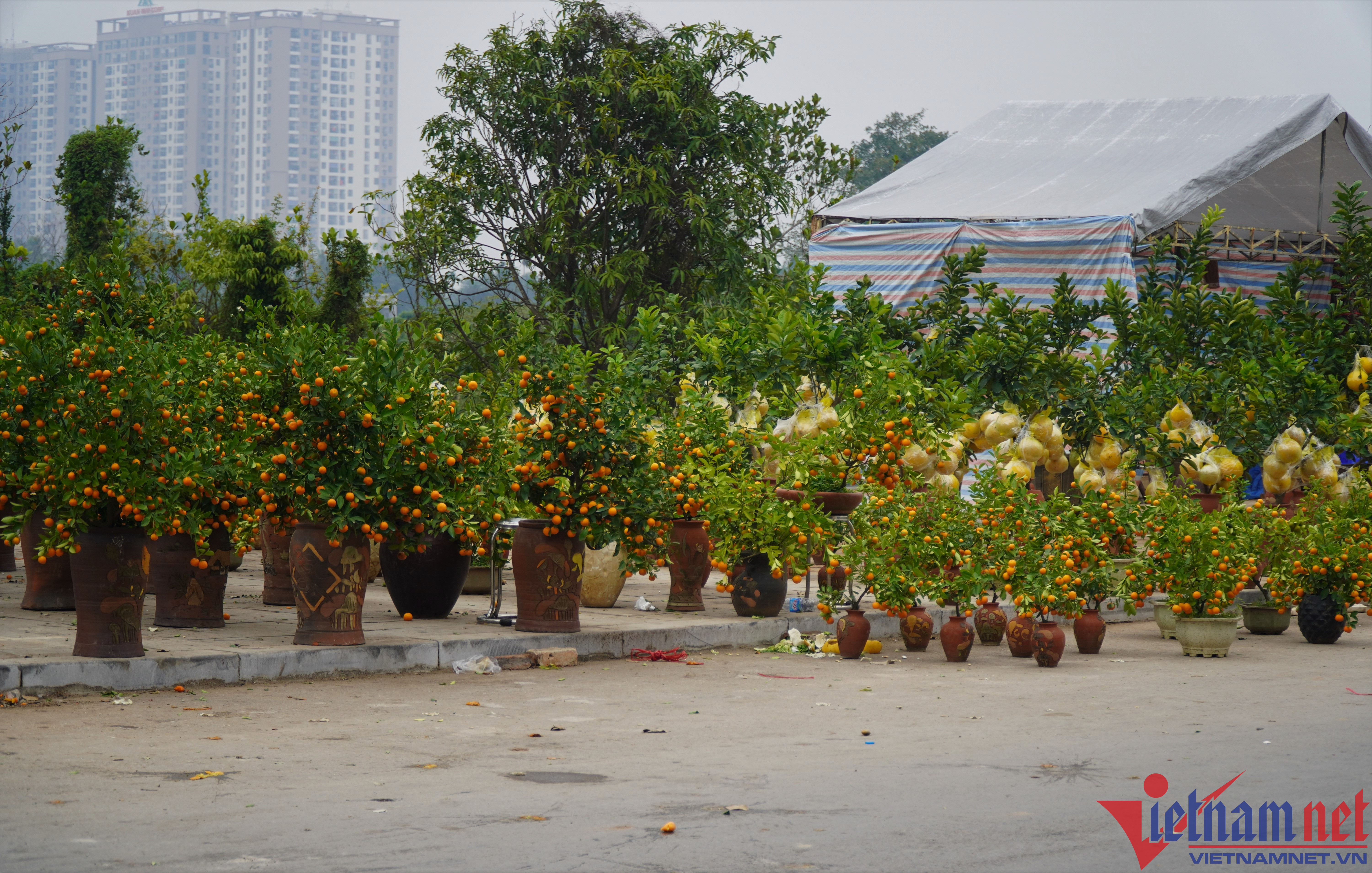 Theo ghi nhận của VietNamNet, lượng đào, quất bày bán còn rất nhiều. Các loại cây to, đẹp cũng không có người hỏi mua.