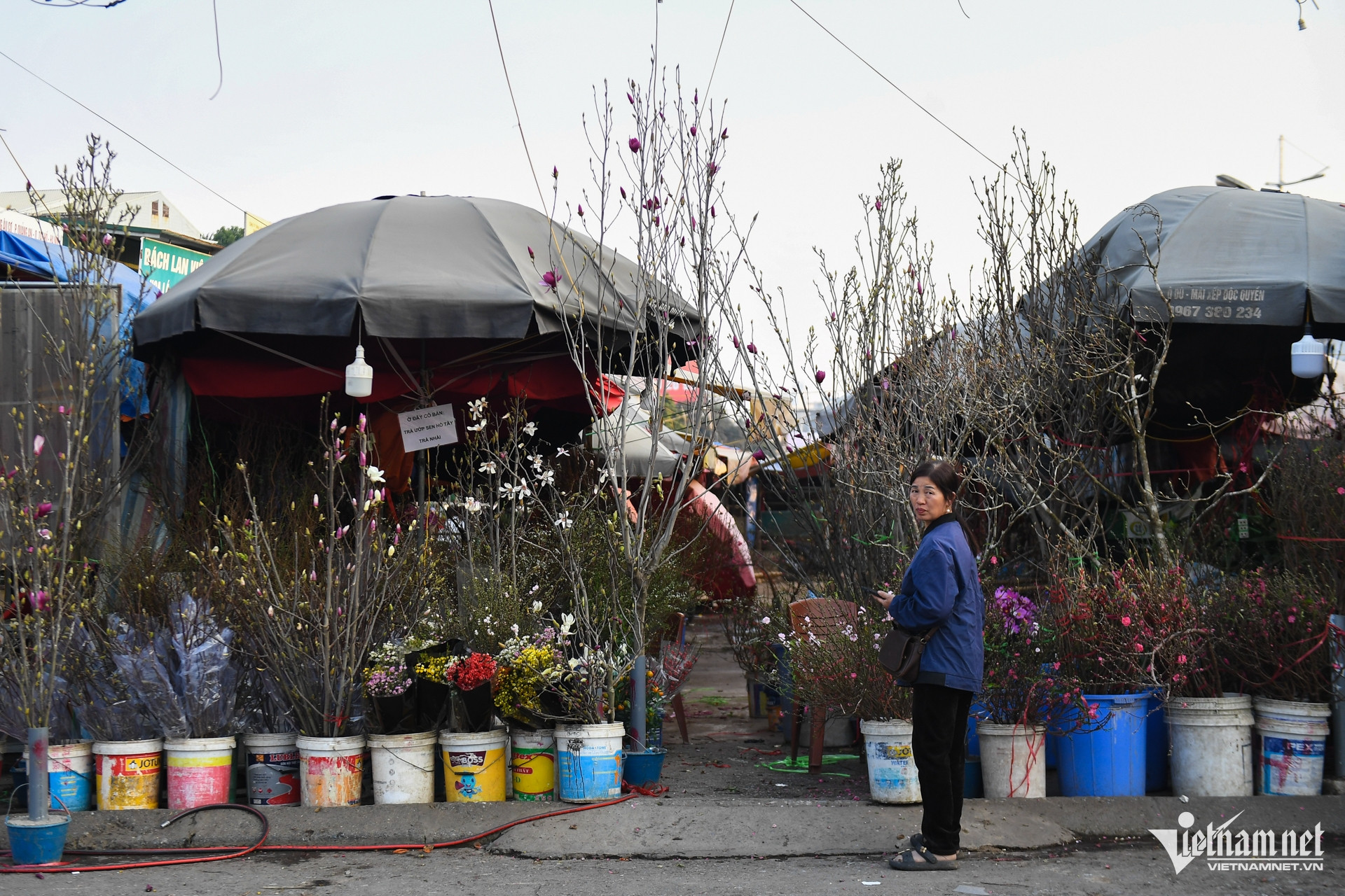 Bà Trịnh Thị Nga (tiểu thương) chia sẻ, giá đào năm nay cao hơn năm trước đôi chút, đặc biệt là đào Nhật Tân bởi số lượng ít do ảnh hưởng của bão số 3 cách đây 4 tháng. "Thông thường hai tuần trước Tết, người dân đã nhộn nhịp đi sắm cây cảnh nhưng thời điểm này bán chậm hơn hẳn. Mất mùa, được giá song lại vắng người mua, chúng tôi khá lo lắng", bà Nga nói.
