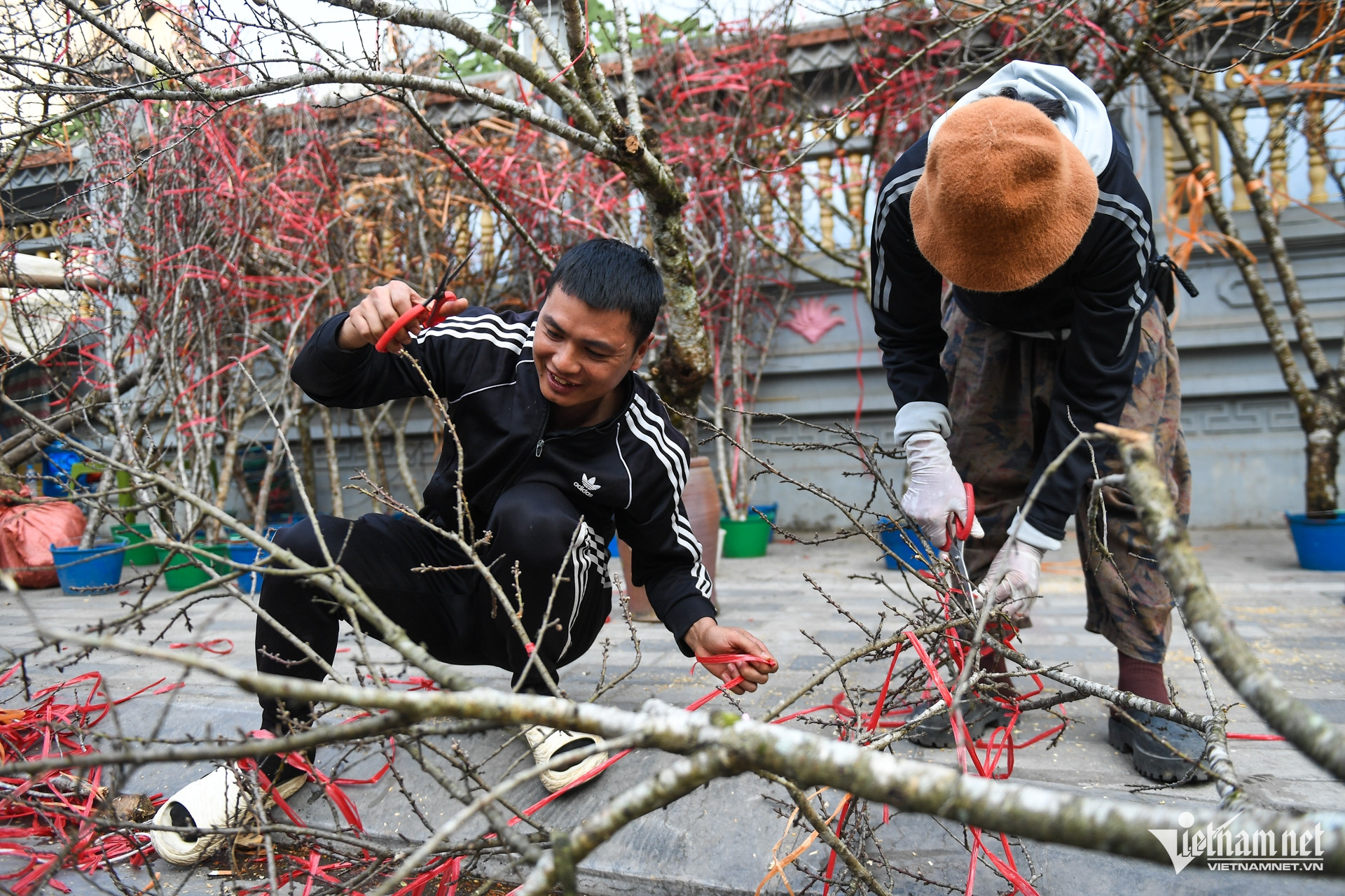 Một vị khách sau hồi lâu đắn đo cũng xuống tiền mua về một cành đào dáng huyền với giá 1,5 triệu đồng. "Tết nào tôi cũng mua loại đào này cho cửa hàng nên khá rành giá. Năm ngoái cành tương tự thế này giá chỉ 1-1,2 triệu đồng", anh chia sẻ.