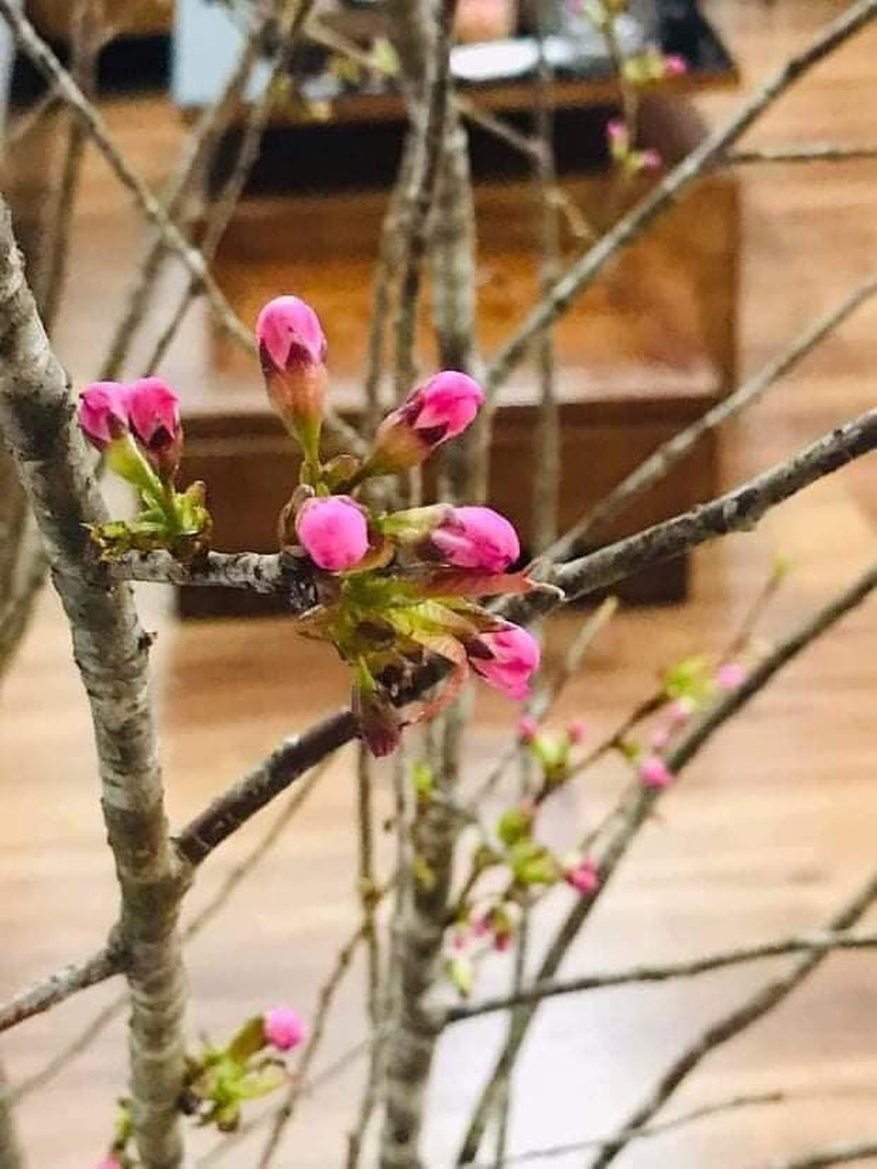 Chị Trang (Ba Đình, Hà Nội) đặt mua đào rừng khoảng 3 ngày thì nhận được hàng. Khi tới tay khách hàng, bó đào rừng mini chỉ có toàn cành với nụ. Nhưng khi cắm vào bình nước khoảng 4-5 ngày thì đào bung nở rất đẹp.