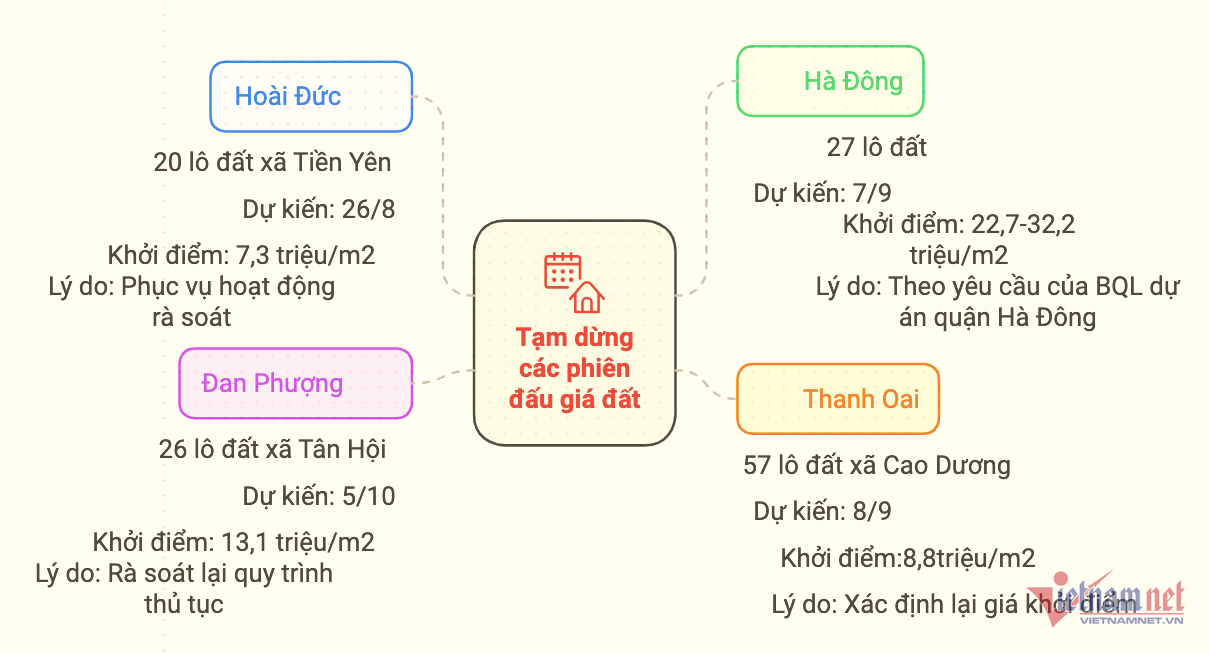 Một trong những thiệt hại thấy ngay là sự sụt giảm về thu ngân sách. Tại Thanh Oai, tổng số tiền thu từ phiên đấu giá 10/8 đạt hơn 80 tỷ đồng, chỉ bằng 20% mức dự kiến tại thời điểm kết thúc phiên đấu.