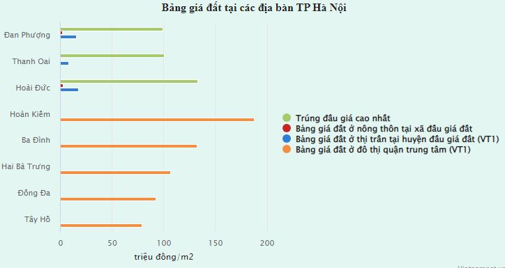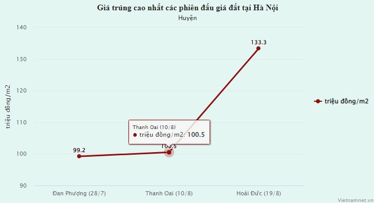 So với bảng giá đất của Hà Nội hiện nay, mức trúng đấu giá trên cao hơn so với bảng giá đất của các quận nội thành. Thậm chí còn cao hơn bảng giá đất nhiều khu vực tại quận Hoàn Kiếm, Ba Đình, Hai Bà Trưng…