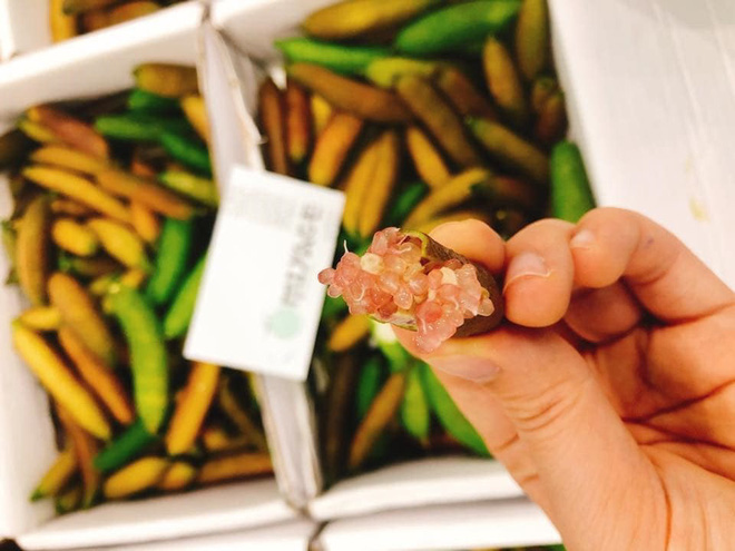 Tuy nhiên, một loại chanh có hình dạng giống như ngón tay lại có giá bán đắt đỏ, lên tới 3 triệu đồng/kg. Không chỉ khác biệt về hình dạng, phía trong quả chanh là hàng nghìn hạt nhỏ liti như trứng cá tầm.